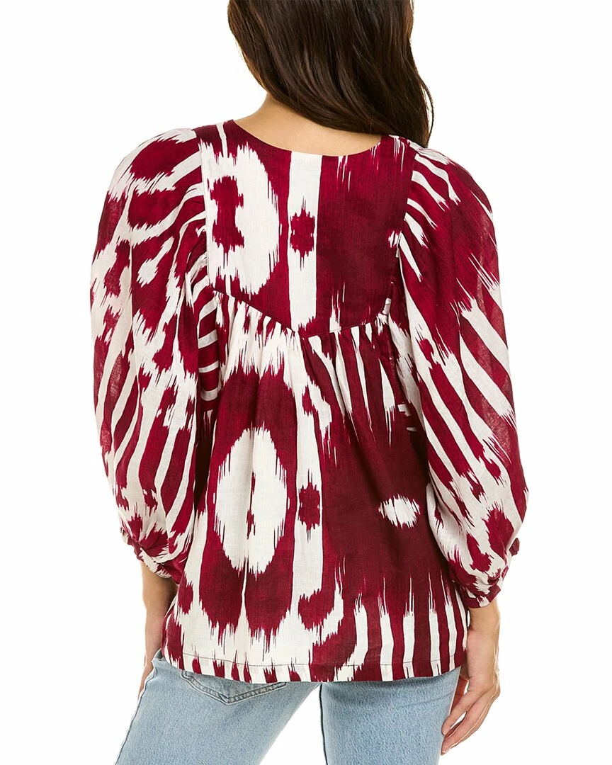 - Anastasia Top in white rose nordic ikat with oversized sleeves and gathered peplum hem