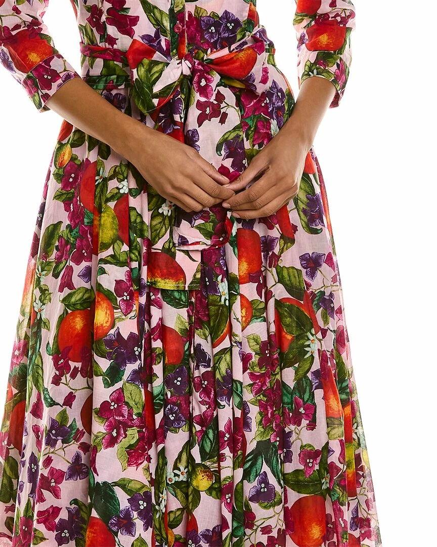 - Aster Midi Dress in soft pink tuscani arancia with side seam pockets, belted waist, and tie sash