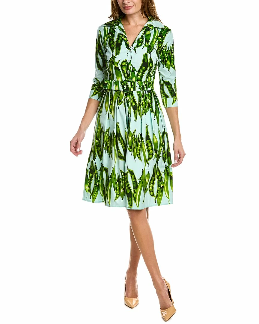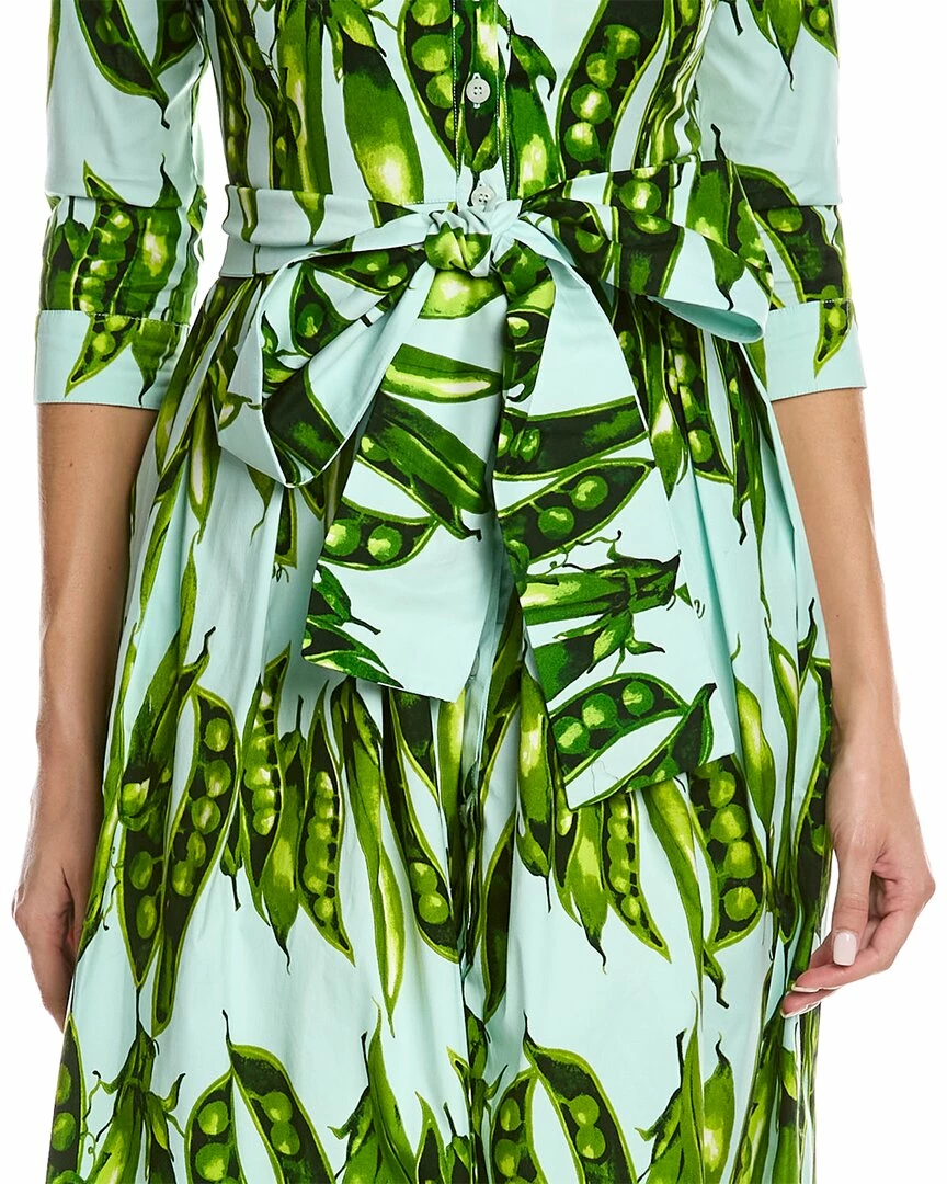 - Audrey 1 Shirtdress in soft aqua green sweet pea with 3/4-length sleeves, pleated skirt, side seam pockets, belted waist, and tie-sash
