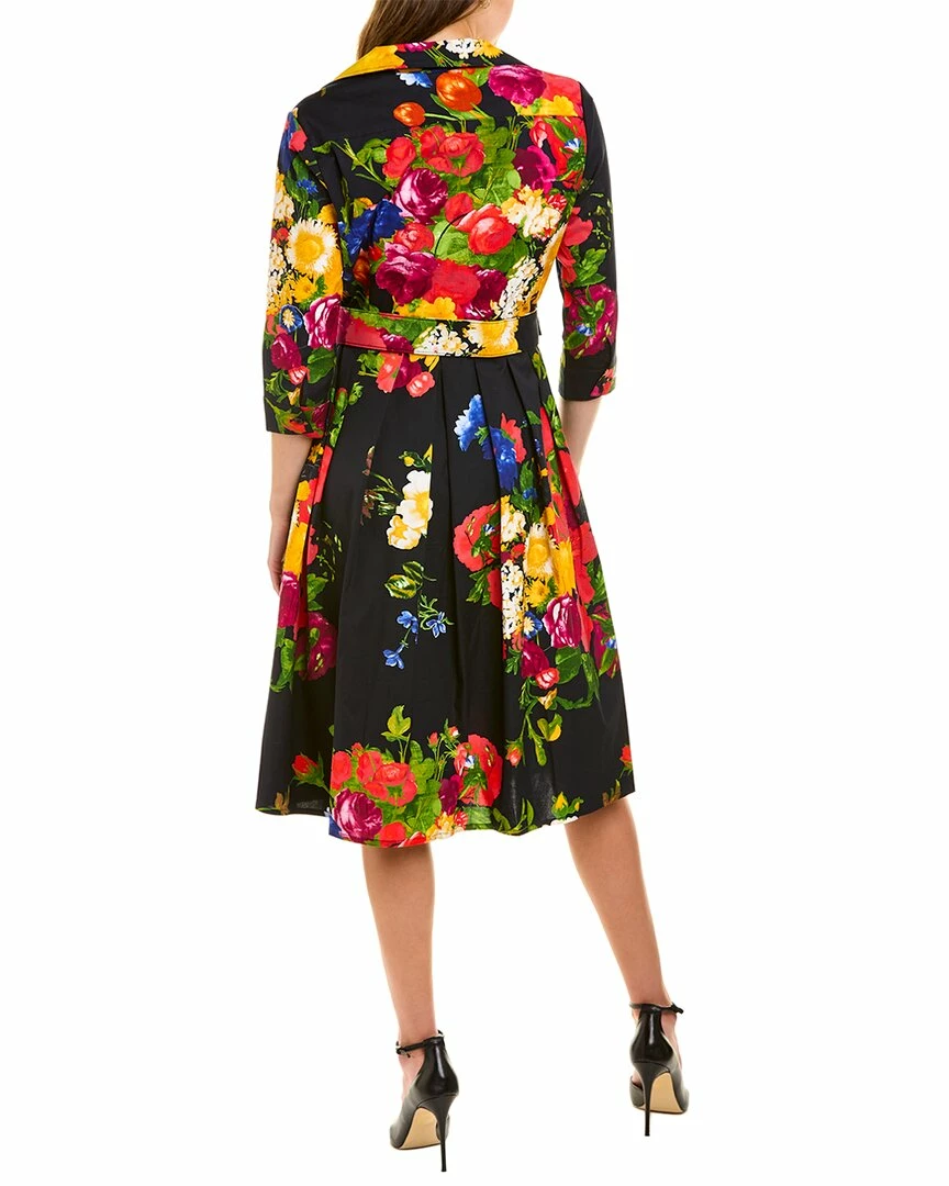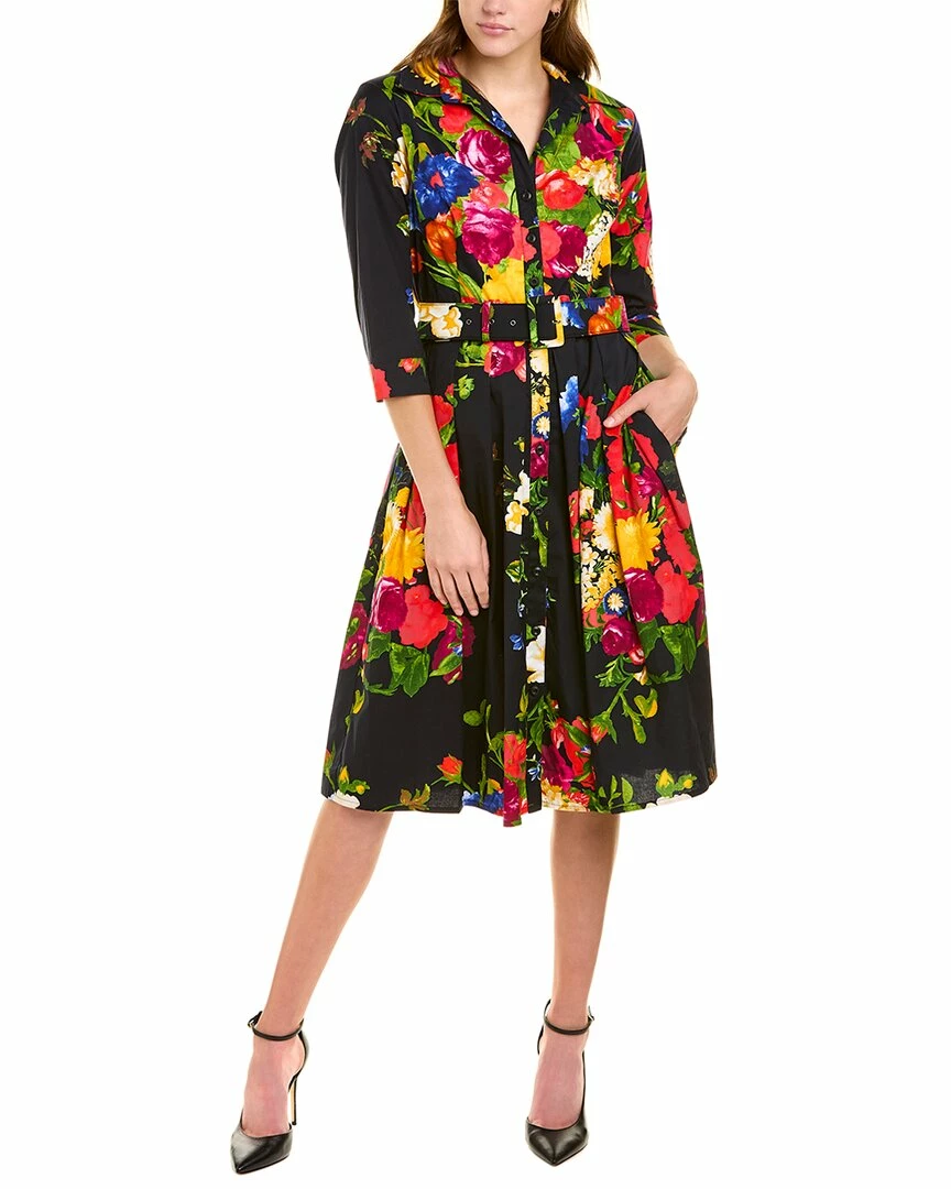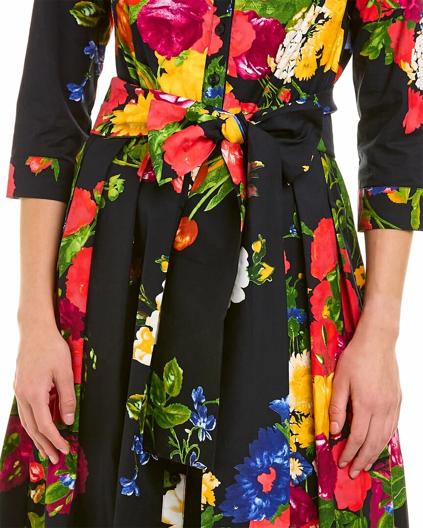 - Audrey 1 Shirtdress in multicolor Rembrandt with 3/4-length sleeves, pleated skirt, side seam pockets, belted waist, and tie-sash