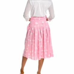 - Design details: pleated skirt, two front pockets, belt and tie-sash at waist