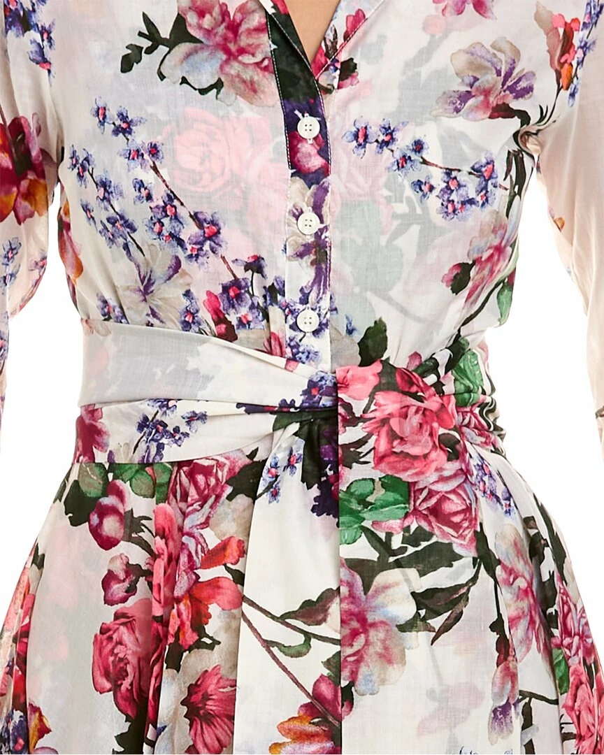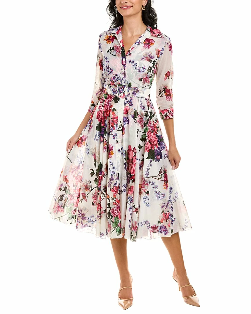 - Audrey 3 Shirtdress in white rembrant with spread collar, pleated skirt, dual side on-seam pockets, and removable belt