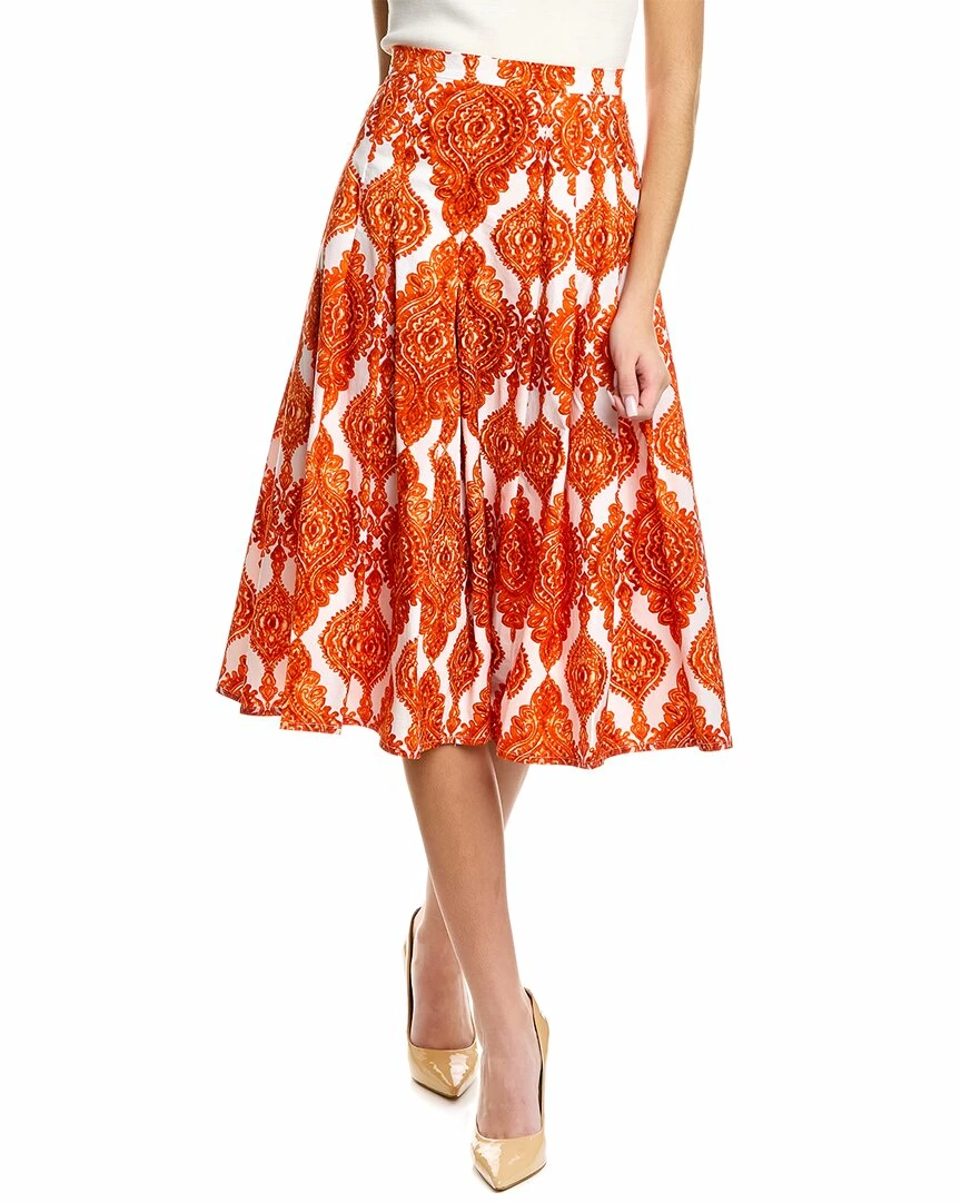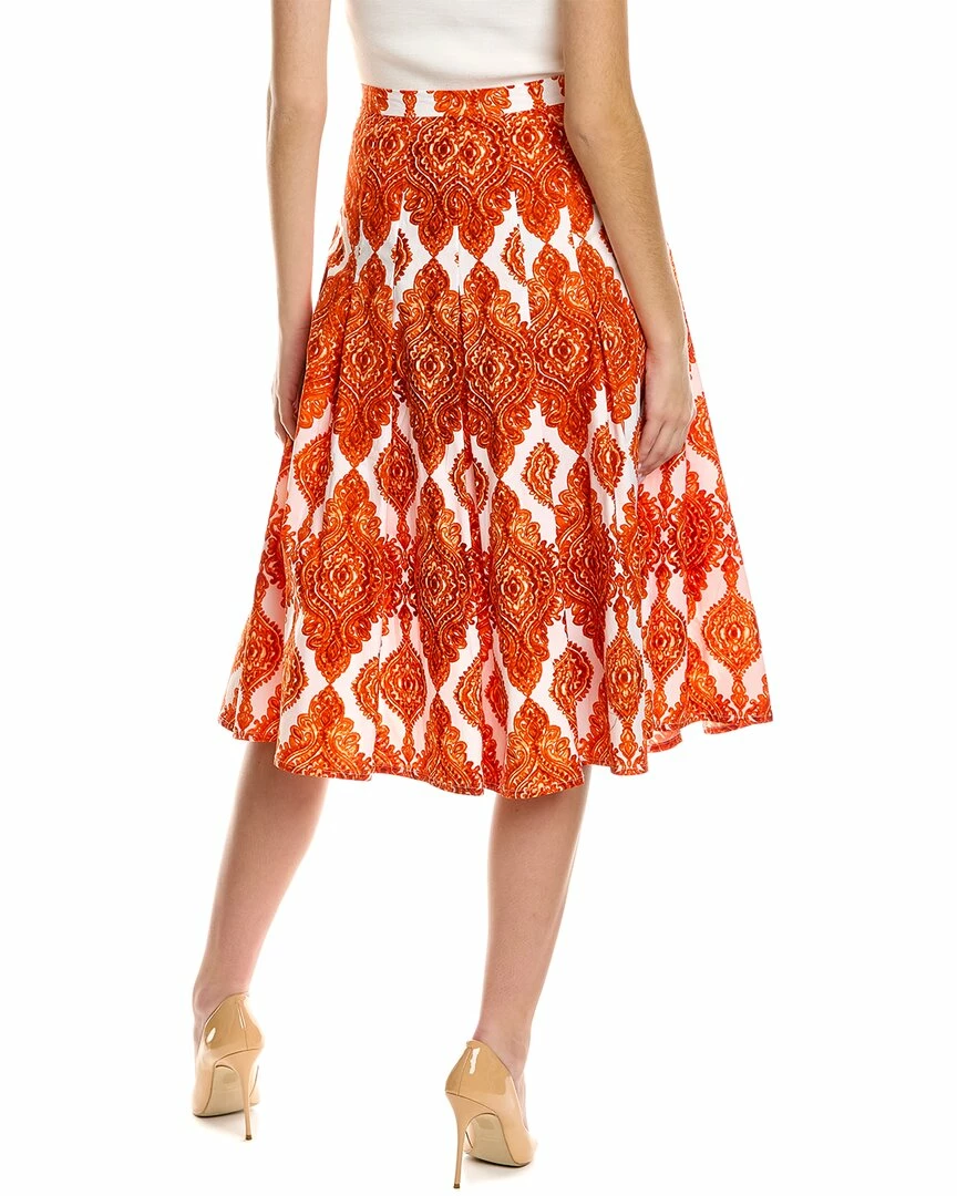 - Zeller Skirt in orange Damascus wallpaper with pleated design